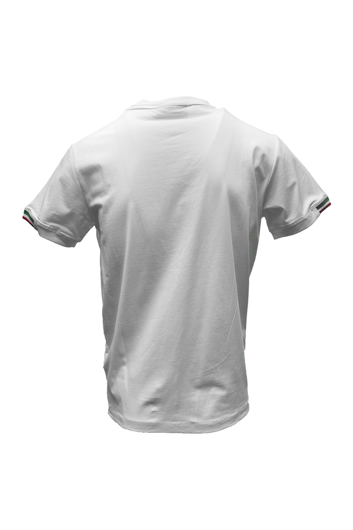 Introducing the Vialli Candy T-shirt, a must-have for your summer collection. Made with a blend of cotton and spandex, this basic t-shirt features the Italian Vialli logo on the front and Italian colors on the collar and sleeves. Stay comfortable and stylish with cuffed, elasticated sleeves and a classic round neck.