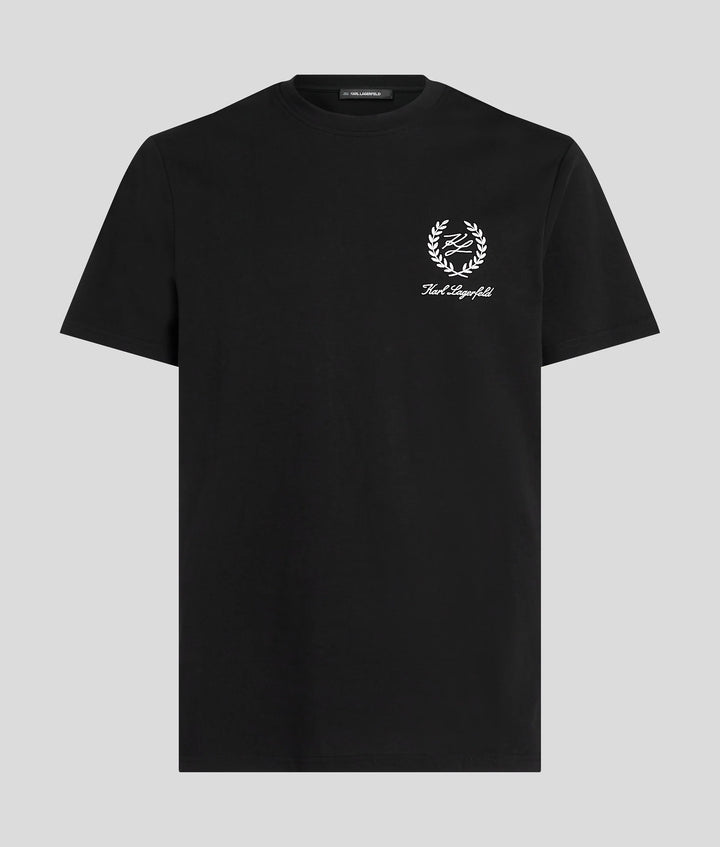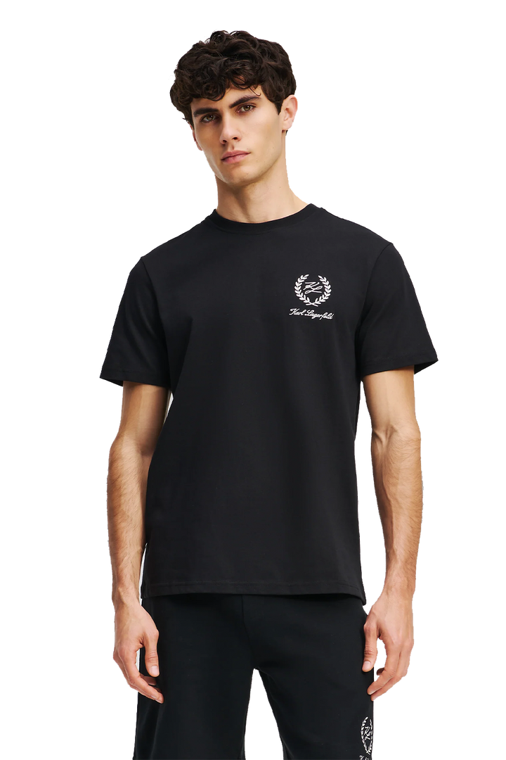 The Hotel Karl Crest T-Shirt is a versatile wardrobe essential crafted from 100% organic cotton jersey for exceptional softness and breathability. Featuring a classic crew neck, short sleeves, and a subtle embroidered Hotel KARL crest on the left chest, it balances comfort with understated style. Ideal for lounging or casual wear, this T-shirt pairs perfectly with matching sweatshorts or sweatpants for a cohesive, relaxed look. Made in Turkey, it offers quality and sustainability in one smart design.
