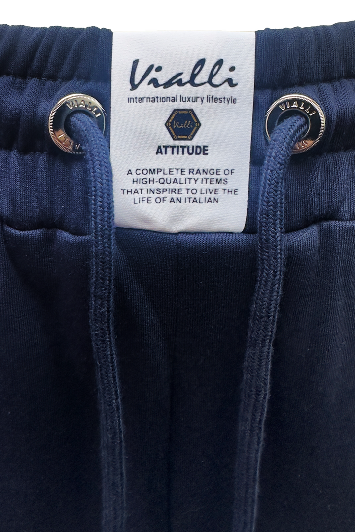 The Jakarad Track Pant delivers contemporary sportswear styling with functional design elements. Featuring a comfortable elasticated waistline and cuffed ankles, these pants provide a secure, tailored fit. Dual zip-up side pockets and a back pocket offer practical storage solutions, while drawstrings allow customizable comfort. Signature Vialli branding on the legs completes the look. Ideal for warm weather, this Summer collection piece balances casual versatility with refined athletic aesthetics.