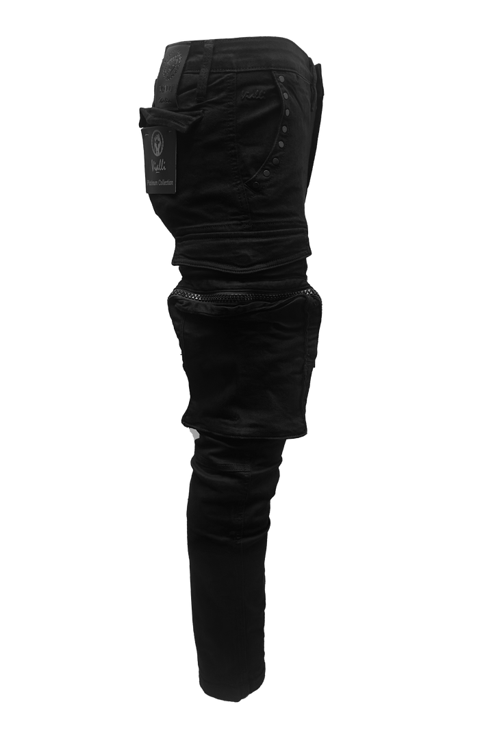 The Japation Esercito Jean from our Platinum Summer collection combines contemporary design with functional style. Featuring signature Vialli branding on the back tag, these jeans showcase decorative studs along the front pockets and distinctive kangaroo-style leg pockets for enhanced utility. The classic five-belt-loop construction pairs seamlessly with a press stud button and zip-fly closure for reliable everyday wear. Crafted with attention to detail, this piece delivers the refined aesthetic Vialli is known for.
