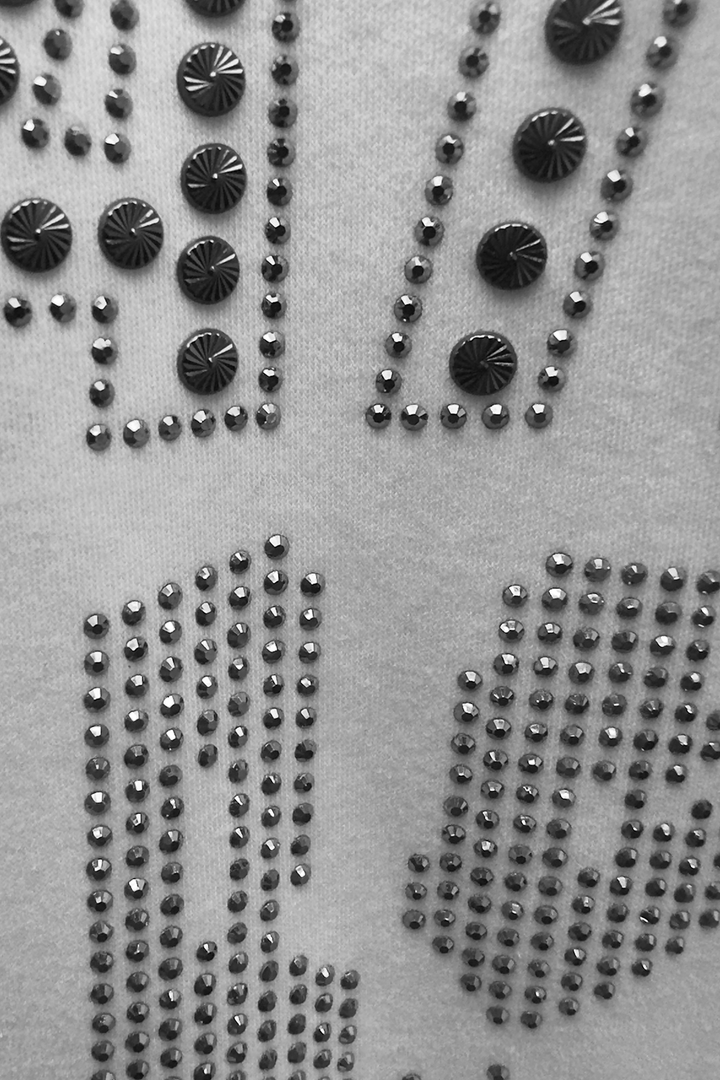 The Static Energie Linz Baggy T-Shirt combines relaxed silhouette with refined detailing. Crafted from pure 100% cotton, this summer essential features intricate stud and bead embellishments across the front, while the back maintains a clean, understated aesthetic. The baggy fit offers contemporary comfort and versatility, making it an effortless addition to any warm-weather wardrobe. Perfect for layering or wearing solo, this piece balances statement styling with everyday wearability.