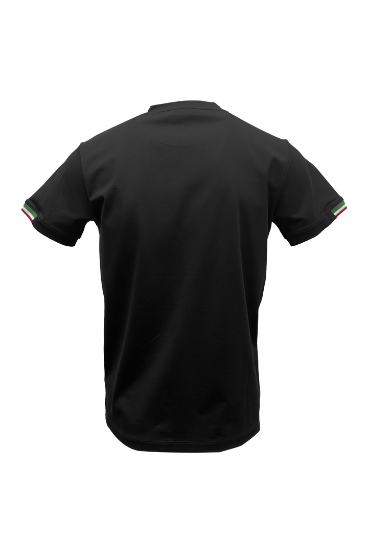 The Nando T-Shirt from the Vialli summer collection combines comfort and style with Italian-inspired colors subtly featured along the design. Crafted from a cotton and spandex blend, it offers breathability and a slight stretch for a perfect fit. Its short sleeves and round neck make it an ideal choice for warm days, blending casual elegance with lasting wearability.